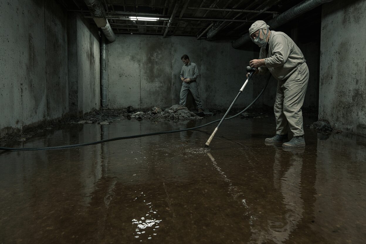 Attempting sewer water cleanup without professional equipment and training is dangerous. Household cleaners are not designed to neutralize sewage pathogens. Improper cleaning can leave bacteria embedded in porous materials and spread contamination to clean areas.